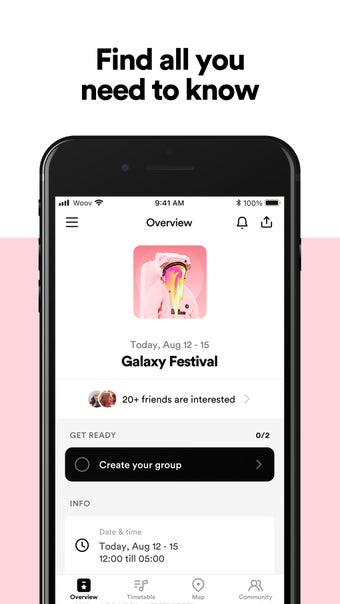 Entre sus principales características, Woov incluye un mapa interactivo que ayuda a localizar tanto a las personas como a los diferentes puntos de interés dentro del evento. Los usuarios pueden mantenerse en contacto con sus grupos, lo que mejora la comunicación y la coordinación durante el festival. Con su enfoque en la socialización y la organización, Woov se presenta como una herramienta esencial para una experiencia memorable.